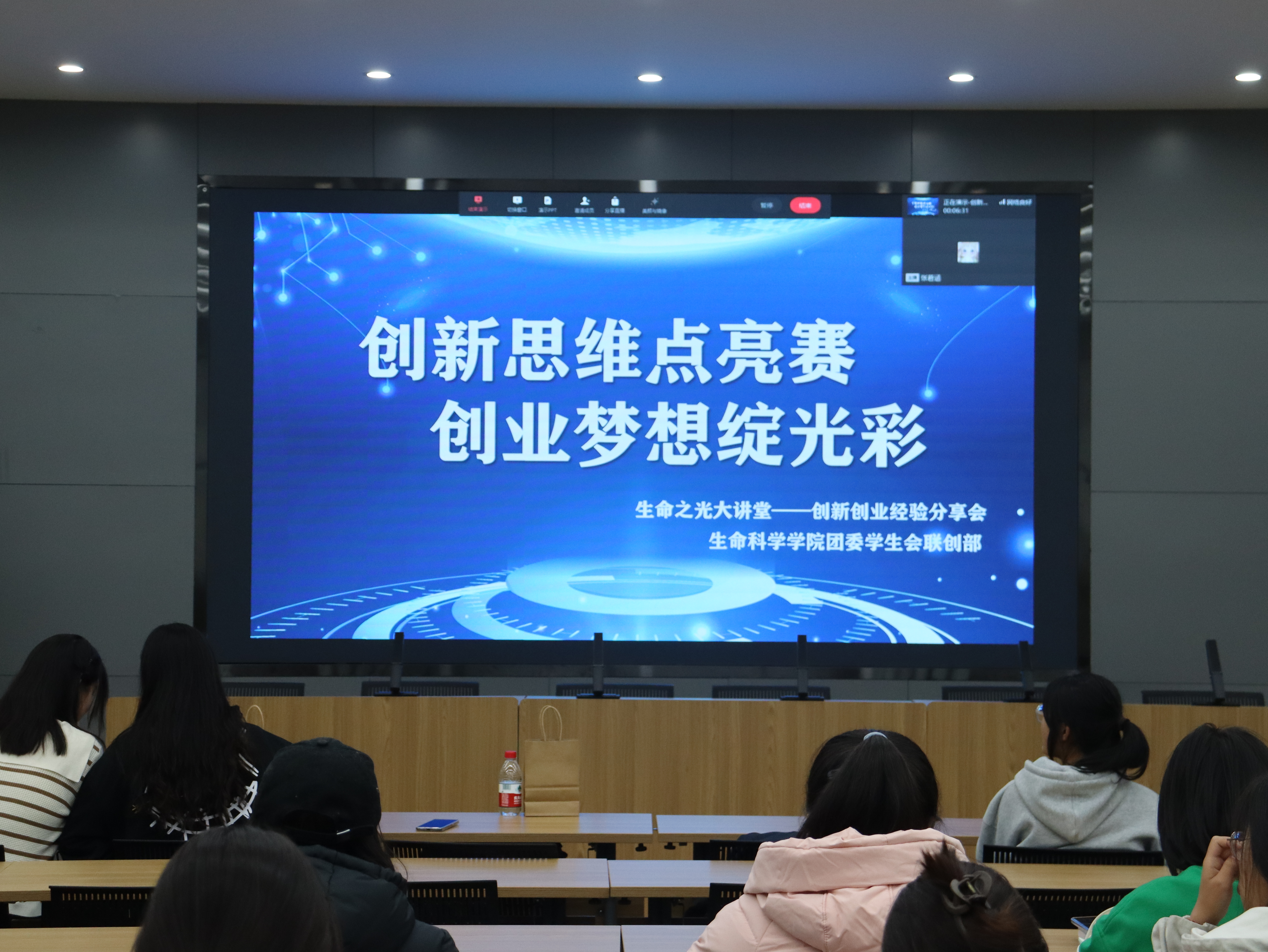 为了激发澳门新莆京游戏大厅学子的创意潜能,共享创业智慧,弘扬创新精神,11月20日,澳门新莆京游戏大厅团委学生会联创部于北区1号办公楼403室开展“创新思维点亮赛,创业梦想绽光彩”创新创业经验分享会,雷婧婕、刘佳、裴欣雯、尚宇琴受邀与同学们分享经验与感悟。101位同学线下学习,其余同学线上观看。